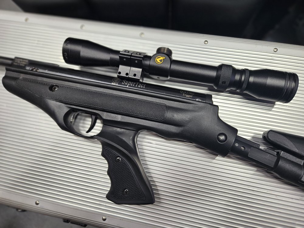 Te koop een mooie Hatsan Supertact 4,5 mm knikloop geweer met afneembare kolf . De Hatsan verkeerd in top staat en komt in een mooie alluminium koffer.