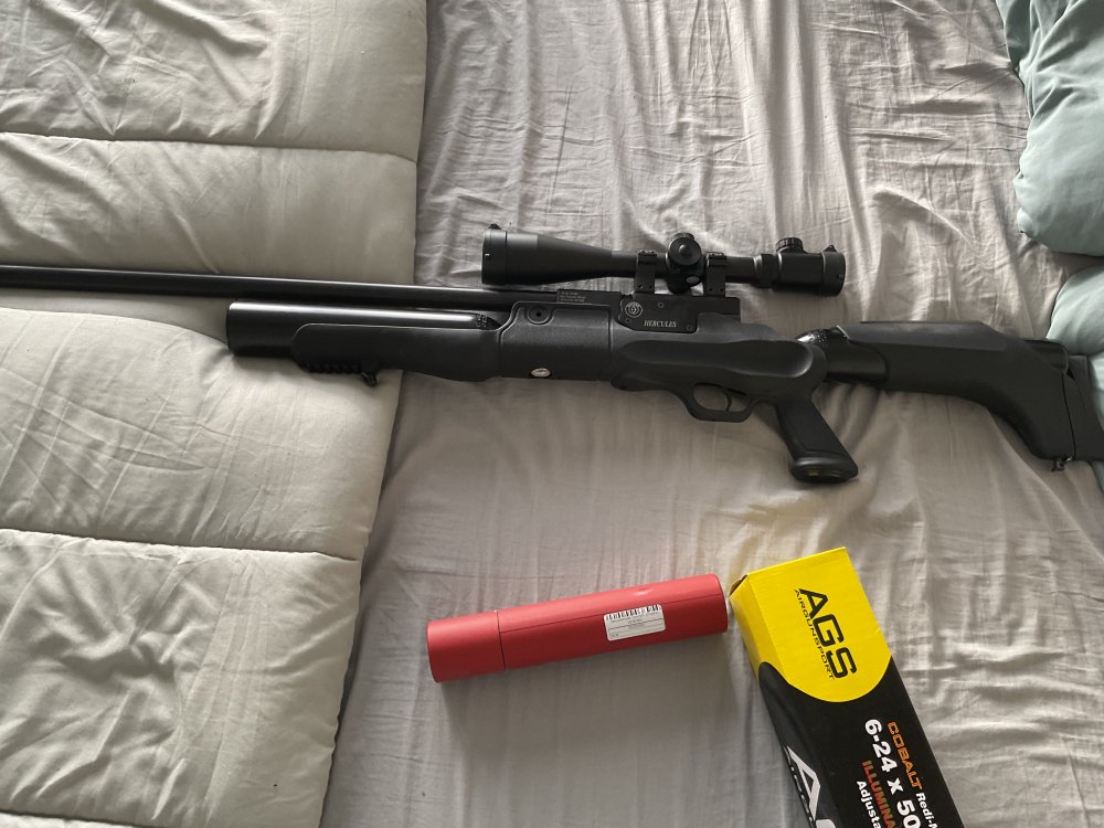 Ivm opzeggen locatie, gedwongen te stoppen met deze sport. Daarom te koop deze z.g.a.n. Hatsan Hercules 9 mm. Inclusief vulslang, Donny geluidsdemper en AGS richtkijker. Cobalt 6-24 maal 50.