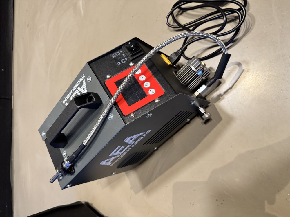 Leuk he... Die buksen die je op 350 bar mag vullen. Bijvoorbeeld Huben... Maar: Nu is er dus eindelijk een compressor die dat ook werkelijk even doet! Handig en draagbaar met ca. 18 kg. Je moet deze compressor eenmalig afstellen op de output die je wilt bereiken. Hij is niet bedoeld om flessen mee te vullen maar: Hij kan redelijk snel het reservoir van je buks vullen! Als hij eenmaal je ingestelde maximum druk bereikt slaat hij automatisch af. Daarna moet je hem bleeden en kun je de verbinding losmaken.